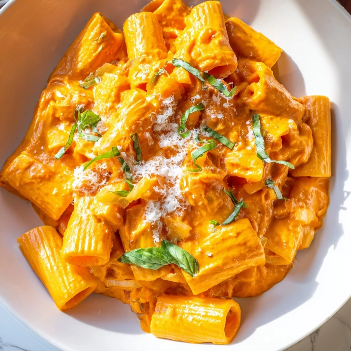This vibrant pasta features a silky smooth sauce made from blended roasted red peppers, creating a naturally sweet and creamy coating for your favorite pasta shape. Ready in just 30 minutes, it uses common pantry ingredients like garlic, onion, and vegetable broth to build depth of flavor. The dish is easily customizable—add protein with chickpeas, adjust spice levels with red pepper flakes, or make it vegan with plant-based cream cheese. Perfect for busy weeknights when you want something satisfying without extensive prep work.